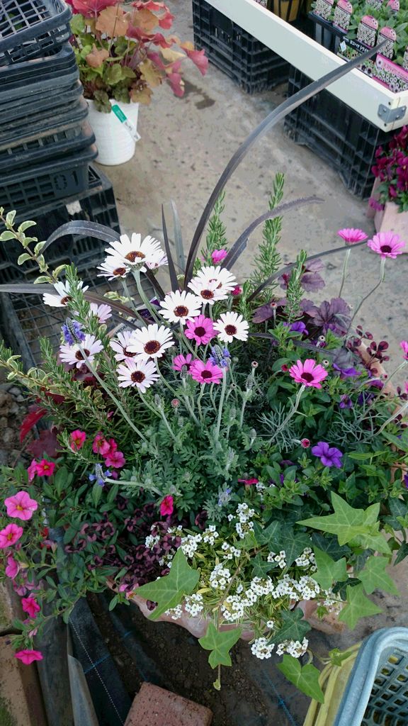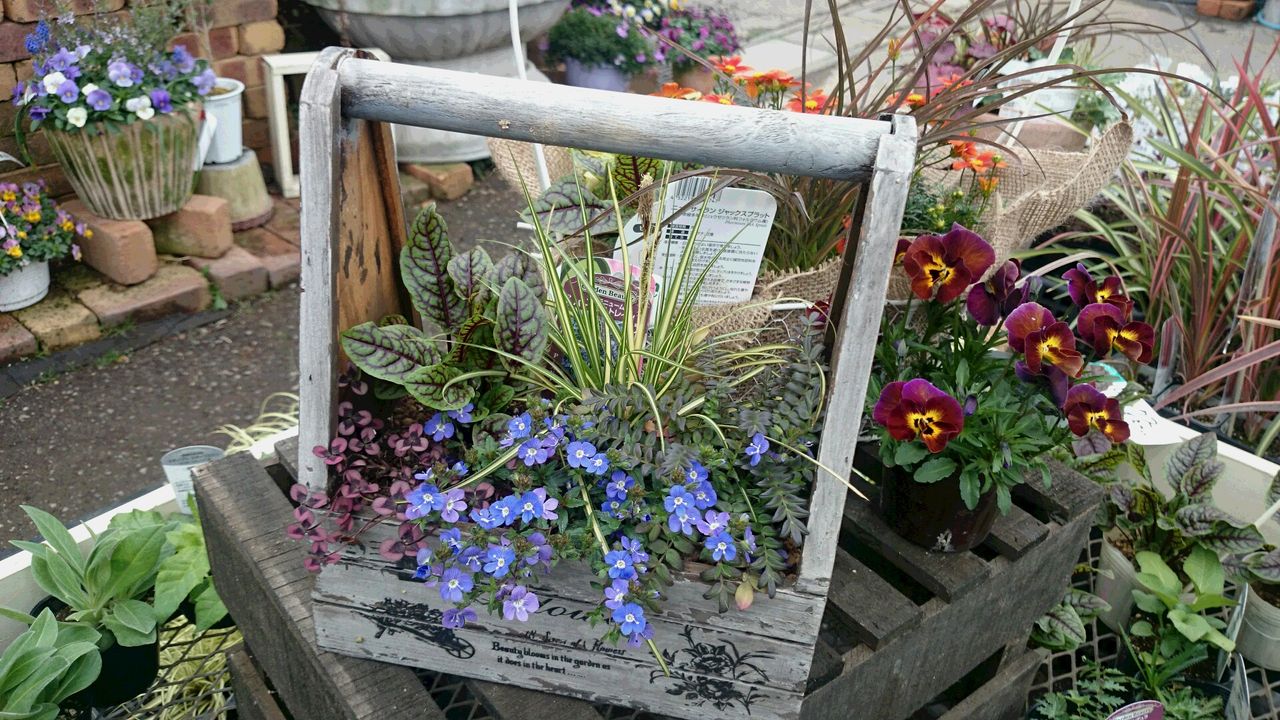 写真は、大きな鉢に、自分で植えると悩んでしまうので…というお客様のご注文の寄せ植えです