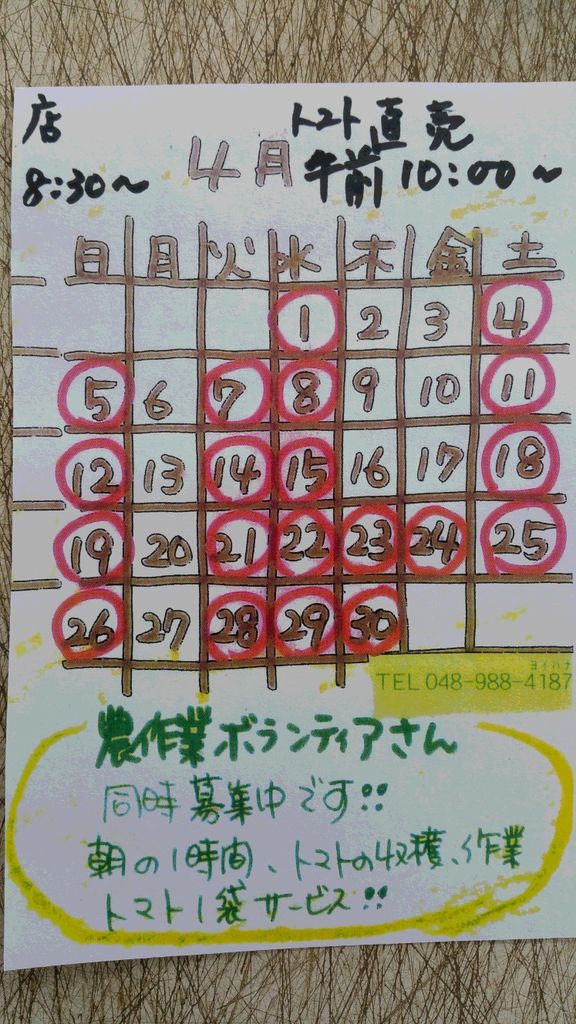 でも、お昼でトマトは売り切れてしまい、せっかく遠くから、来てくださったのに、すみませんでした