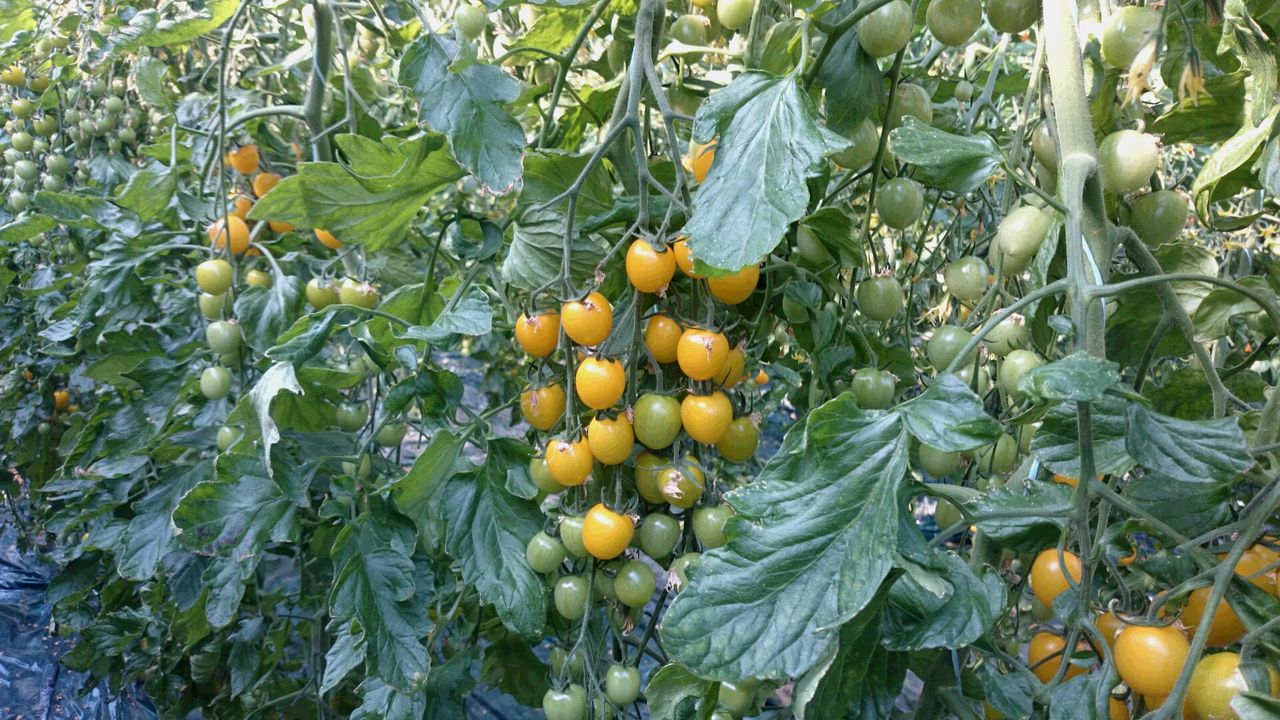 もっと暖かくなれば、トマトも赤くなるんですが…