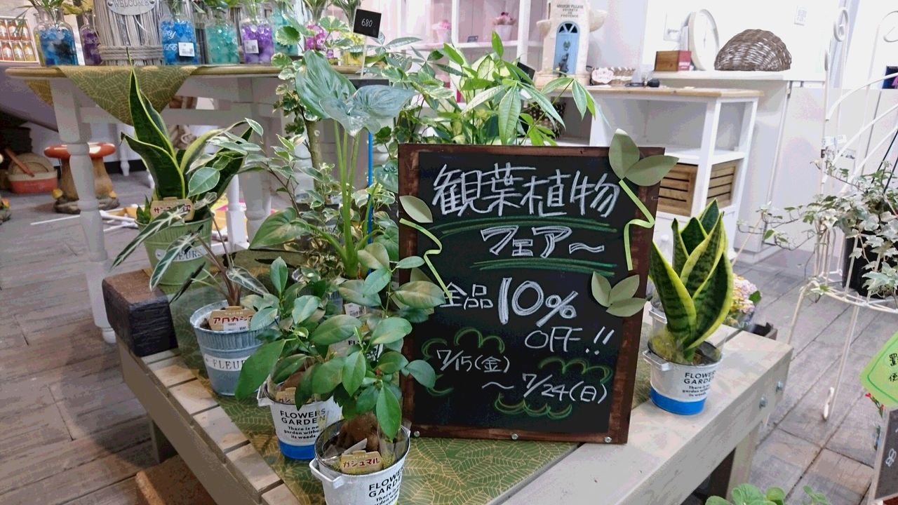 15日(金)より、24日(日)まで、観葉植物(鉢物)のセールやっています