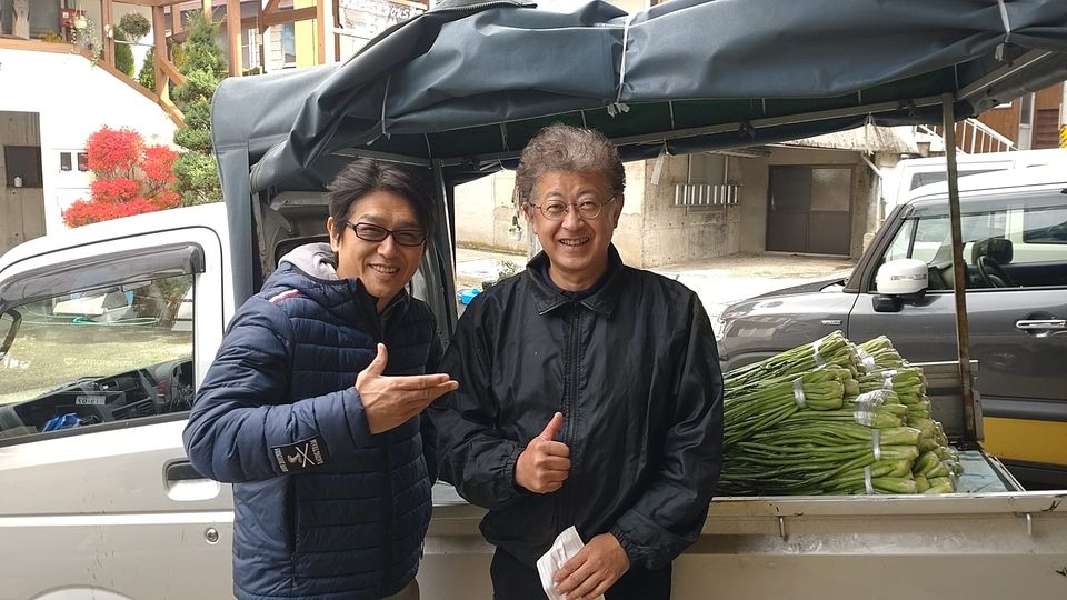 地元のお宿に冬漬込み用の野沢菜をお届けしたら、朝ドラの高橋克典さんが迎えてくれました。