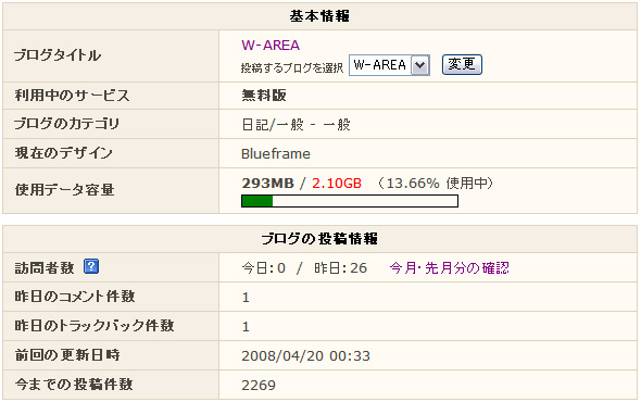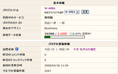 思ったのは、ほぼ毎回画像貼り付けてるのに使用データ容量がまだ13%台というのはライブドアブログの提供容量2GBってのが大きいんですね。