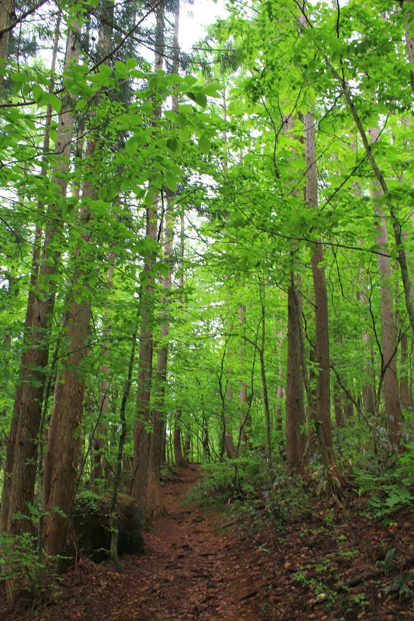 沼まで新緑のゆるやかな登り道。