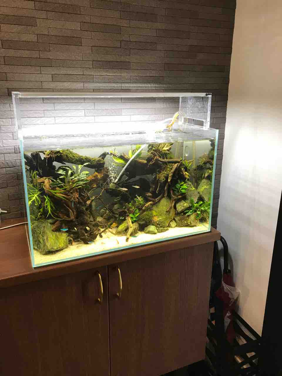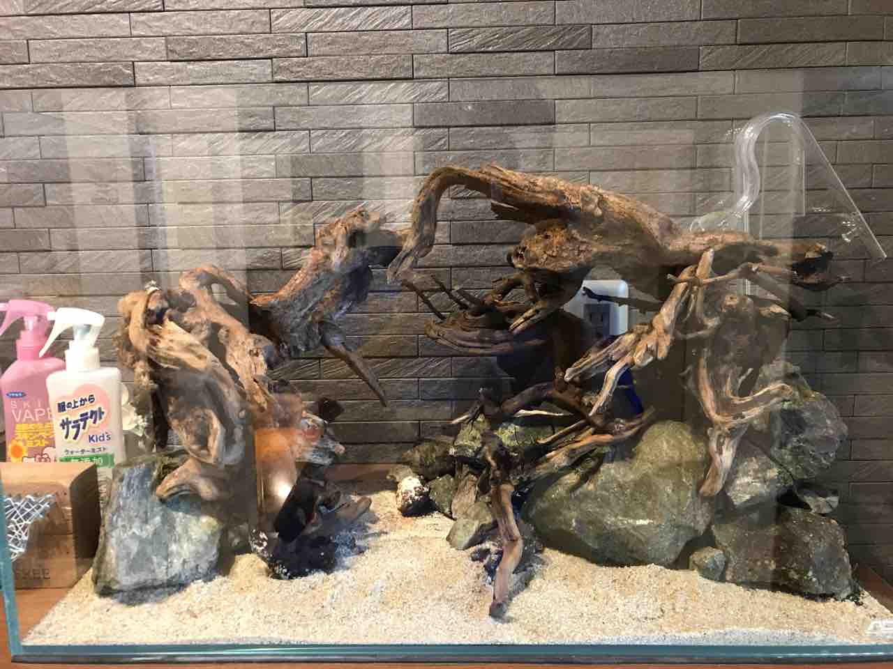以前の水槽台に比べて玄関の靴棚は30センチくらい高くなってるんです!
