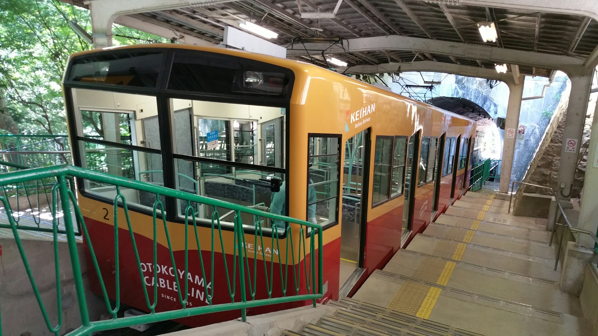 京阪電車に淀屋橋駅から乗って八幡市駅で下車。乗換え込みで所要38分。駅の改札口を出て右手に進み ケーブルカーに乗りました。片道200円。PiTaPaでは支払い不可。途中の眺め