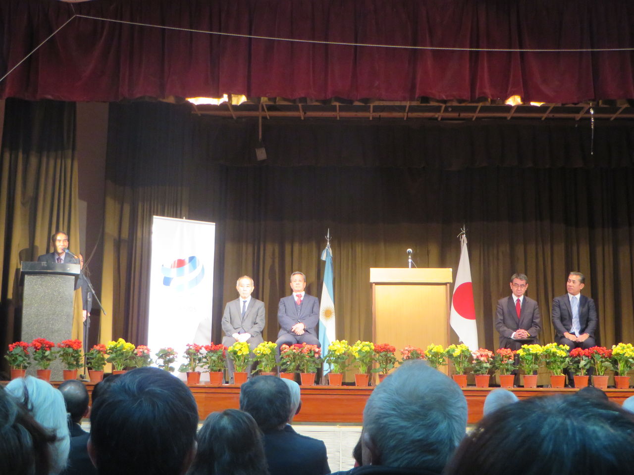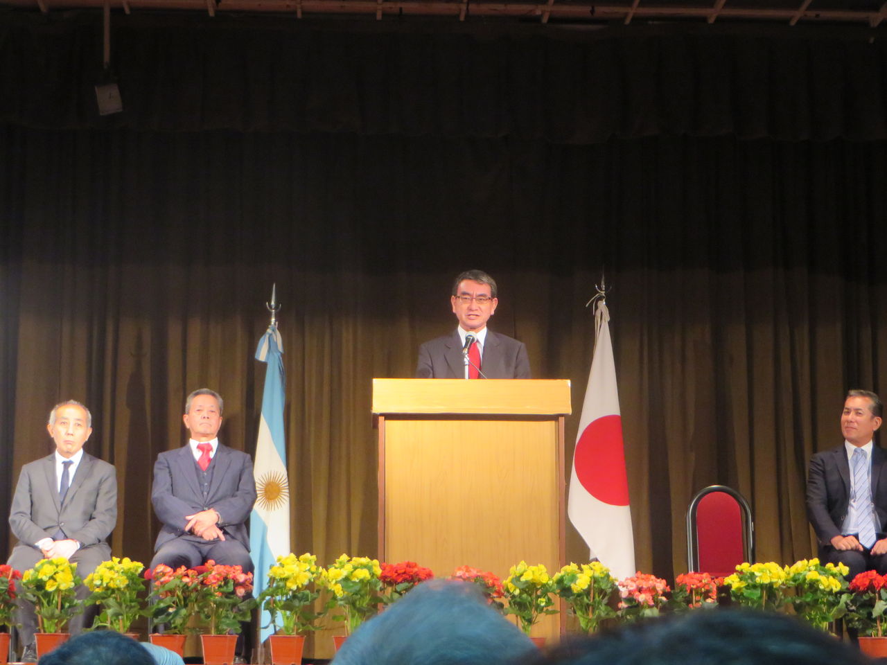 まずは在アルゼンチン日系団体連合会の生垣あきら氏からの歓迎の言葉、そして河野大臣からの日系社会の皆さんへの言葉がありました。