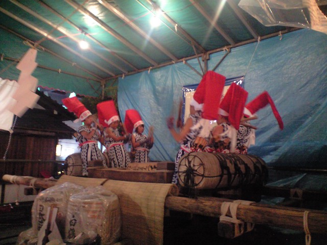 大きな太鼓を6人の願人(がんじん:叩き手)でそろえて叩くのである。