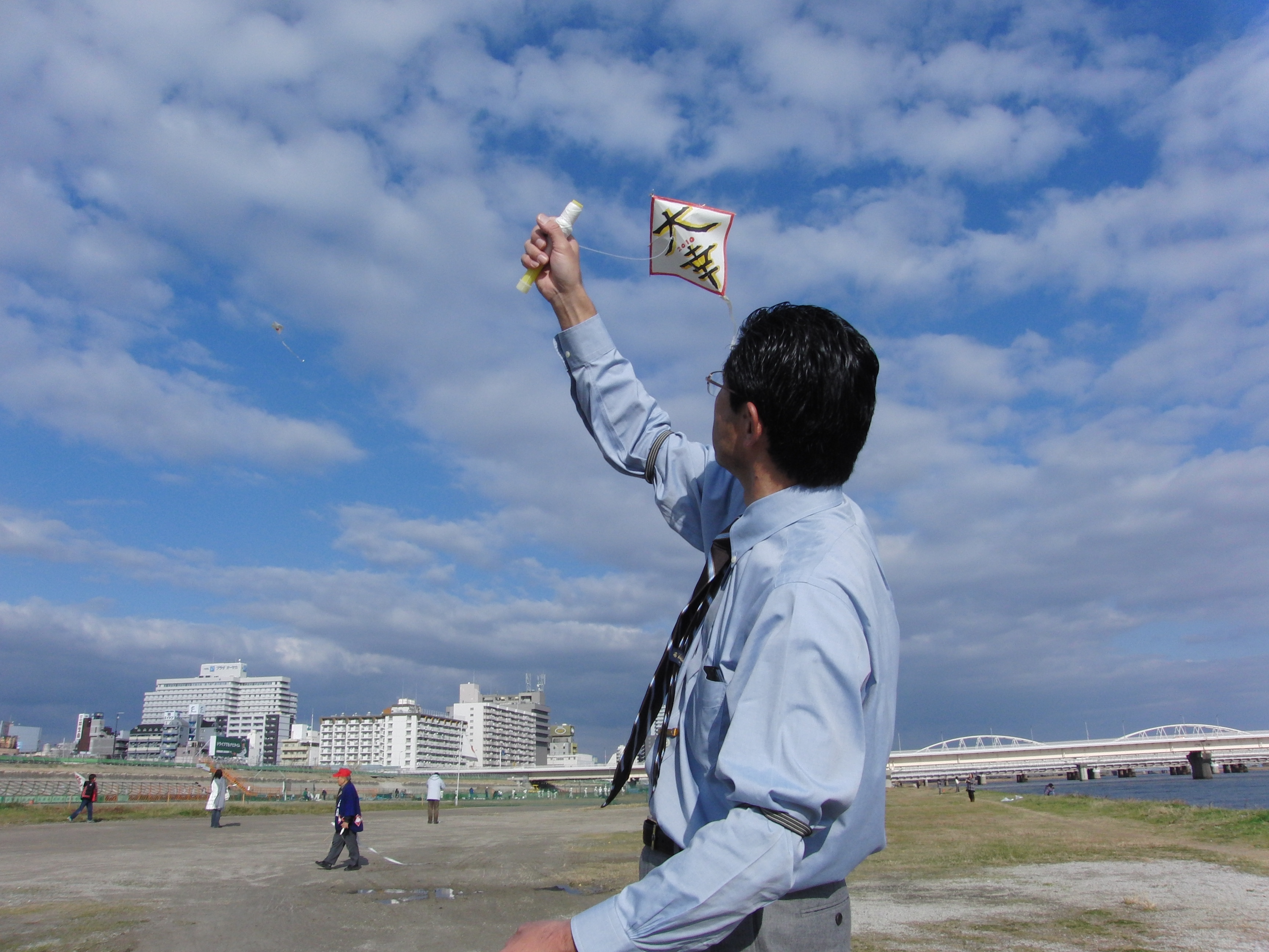 私も、初めは子供たちの凧あげを手伝っていたのですが、