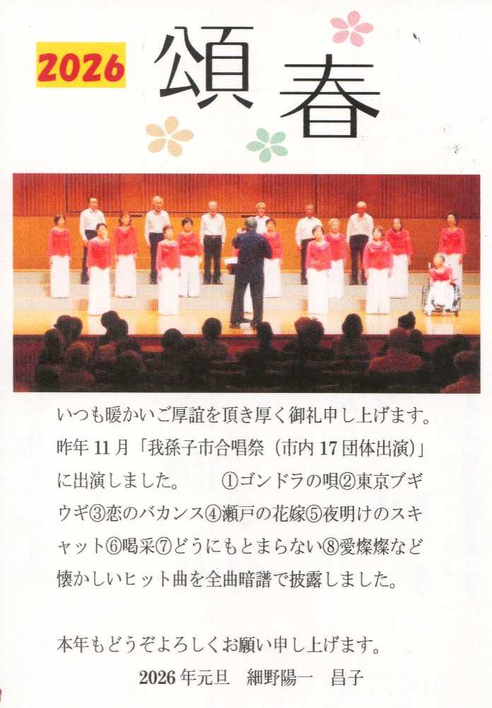 *我孫子市合唱祭で昔の曲を全曲暗譜で歌い切った混声合唱団員も同級生の老い知らず。