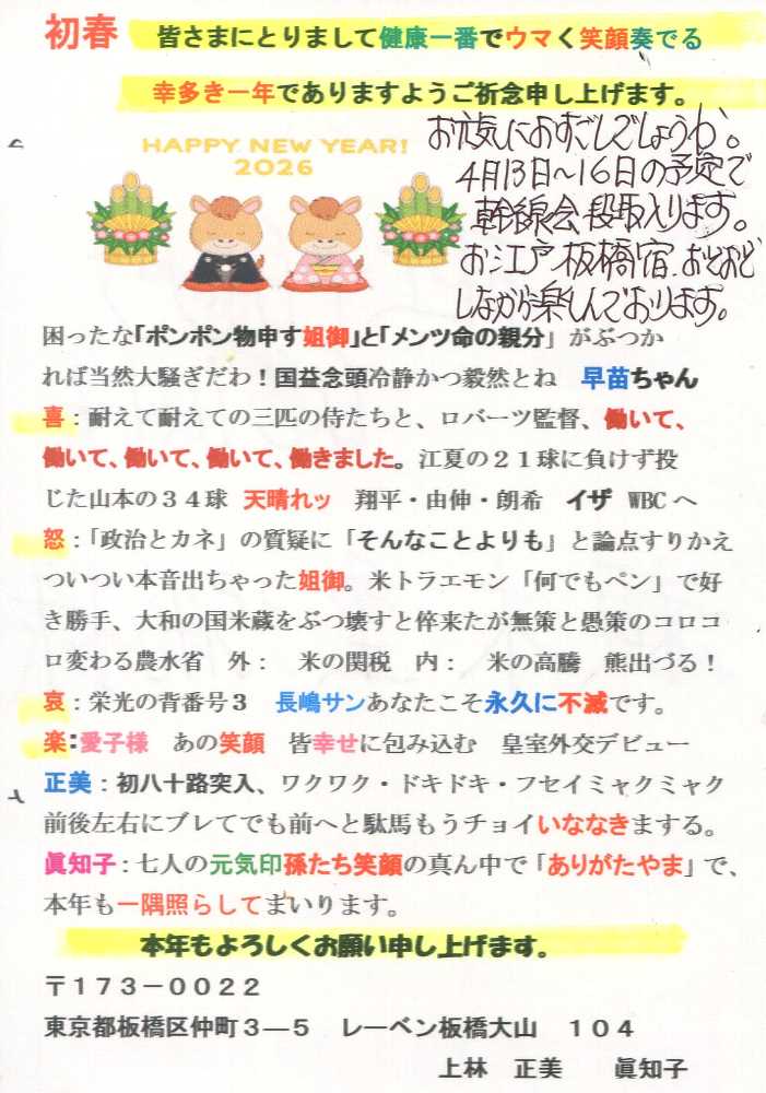 丙午の年、ありがた山の多きことを念じます。