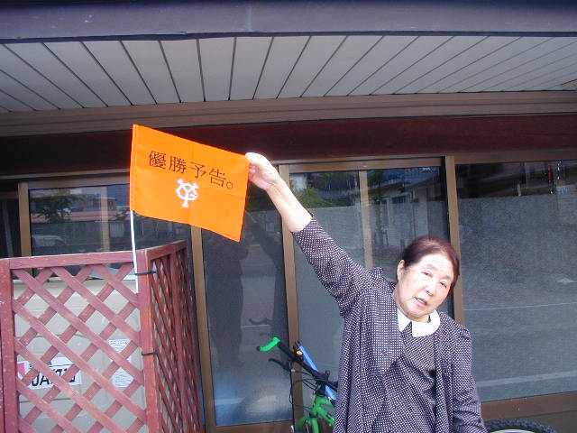 捨てられる運命にあった小旗を、町内にいる、巨人狂にやった。
