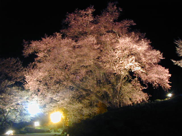 境内で夜桜を眺めながらの白鳥踊りは、一興であった。