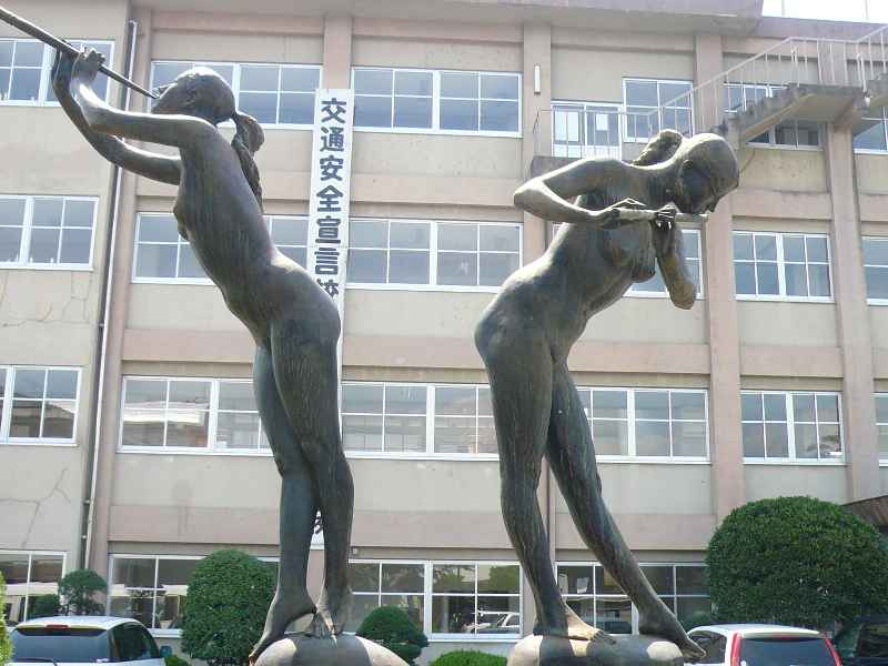 その入り口に、笛を吹く少女のブロンズ像が・・・・。