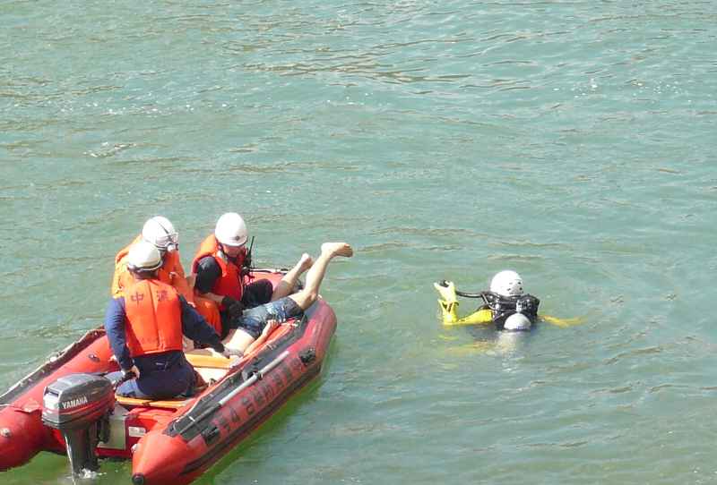 そこにゴムボートが急行し、川底から引き上げた。