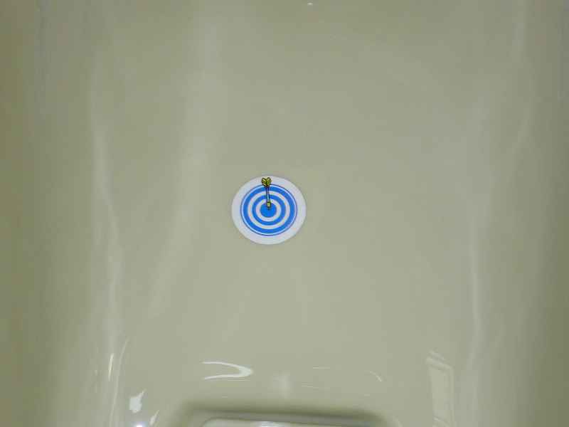 放水先はここですよと“的矢シール”が便器に張ってあった。