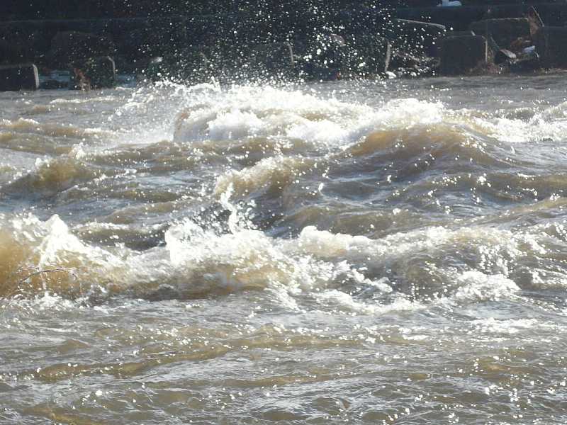 この時期は渇水が常なのに、赤茶色に濁り、水位の高いのに驚いた。