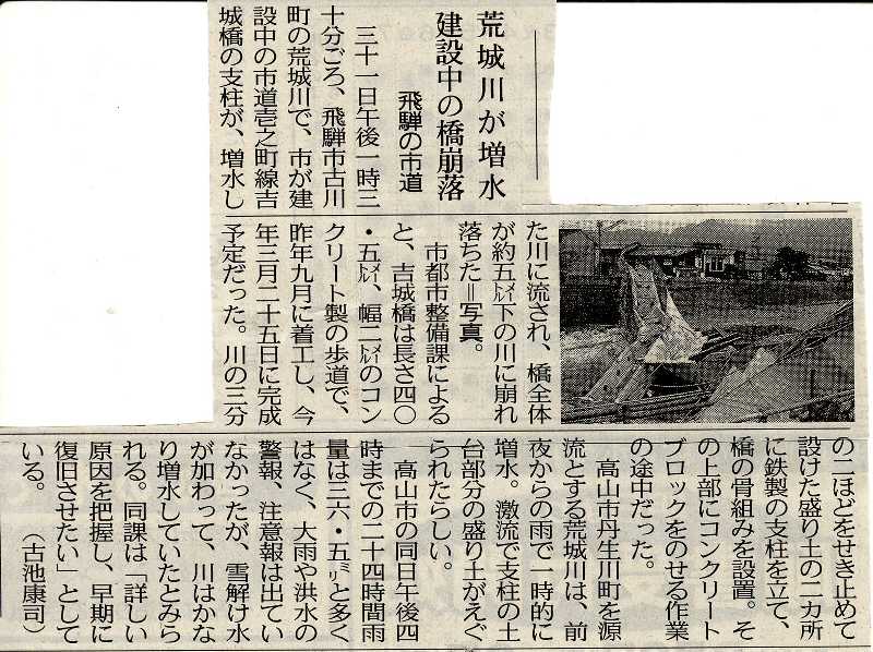 その日の午後、飛騨古川の現場で「架設中の橋が落ちた!」と電話が入った。