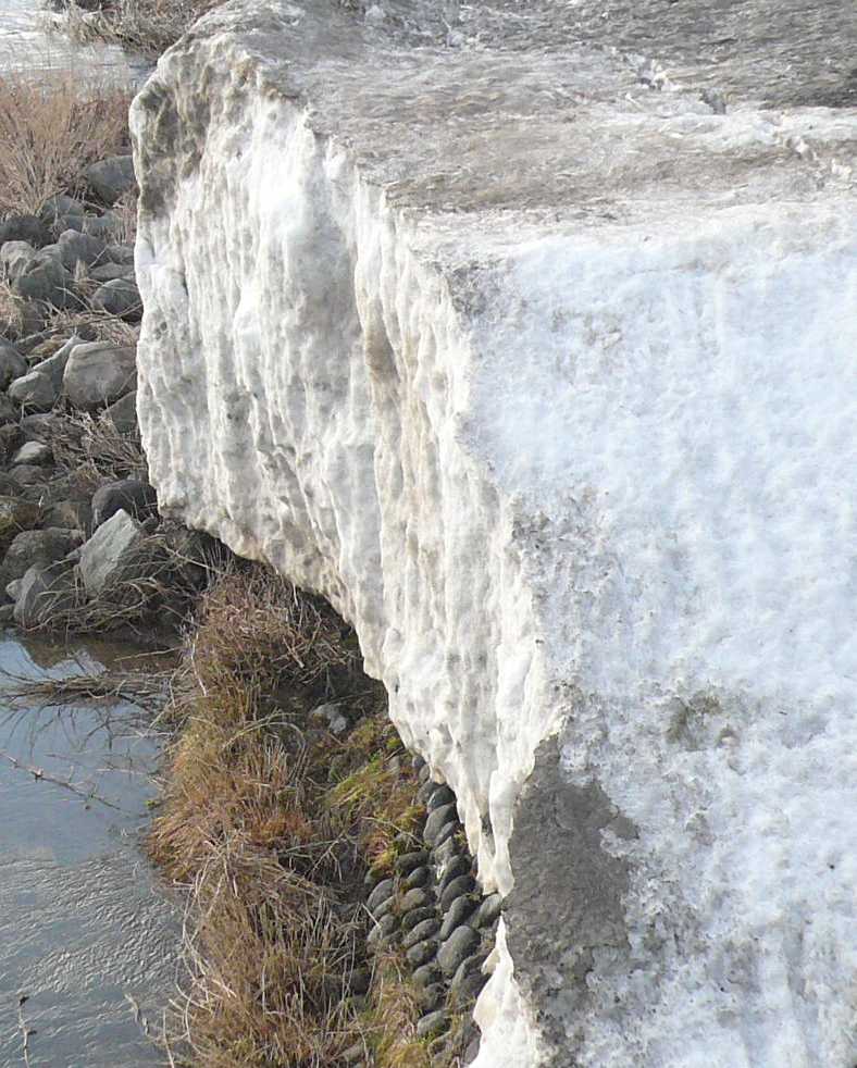 除雪の雪を川に捨てたのが、予想外の増水で、大半がえぐられて出来た。