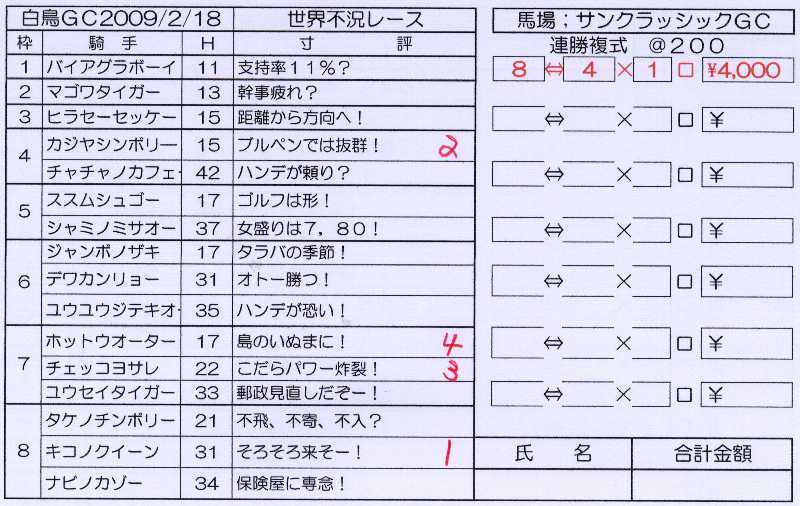 久々に、安い競馬をやった。