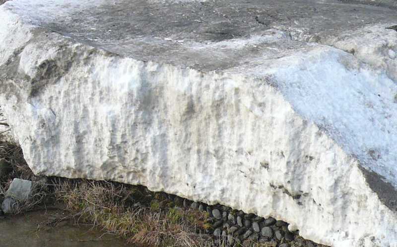何時もなら、ブロックの表面50cmまでは、完全な氷の状態である。
