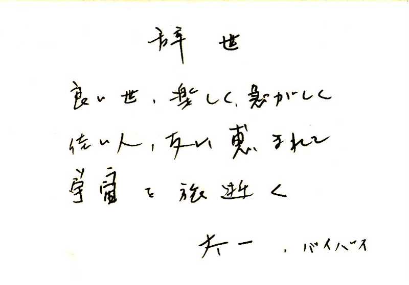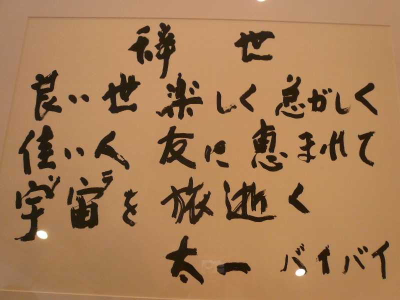 「良い世、楽しく、急がしく、佳い人、友に恵まれて、宇宙(そら)を旅逝く」太一、バイバイ。