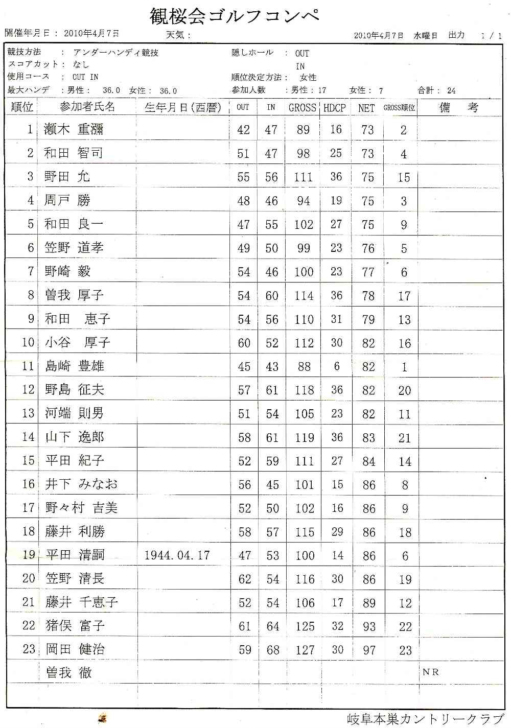 花冷えのする日に、仲間内のゴルフコンペに参加した。