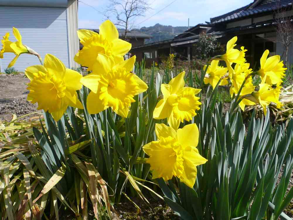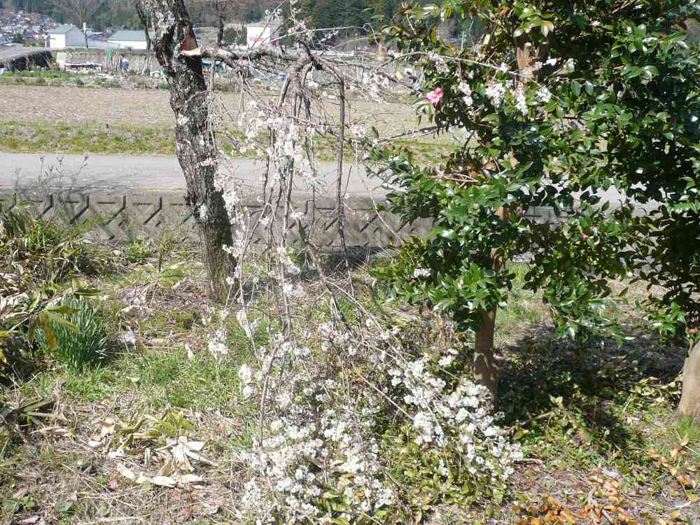 民家の裏庭にある、サクラの枝が、付け根で折れている。
