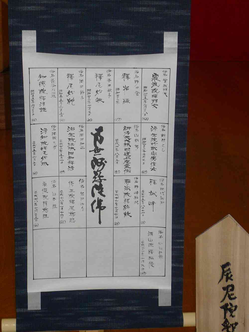 宴会の始まる前に、13名の法名軸に対し、全員で正信偈を読経。