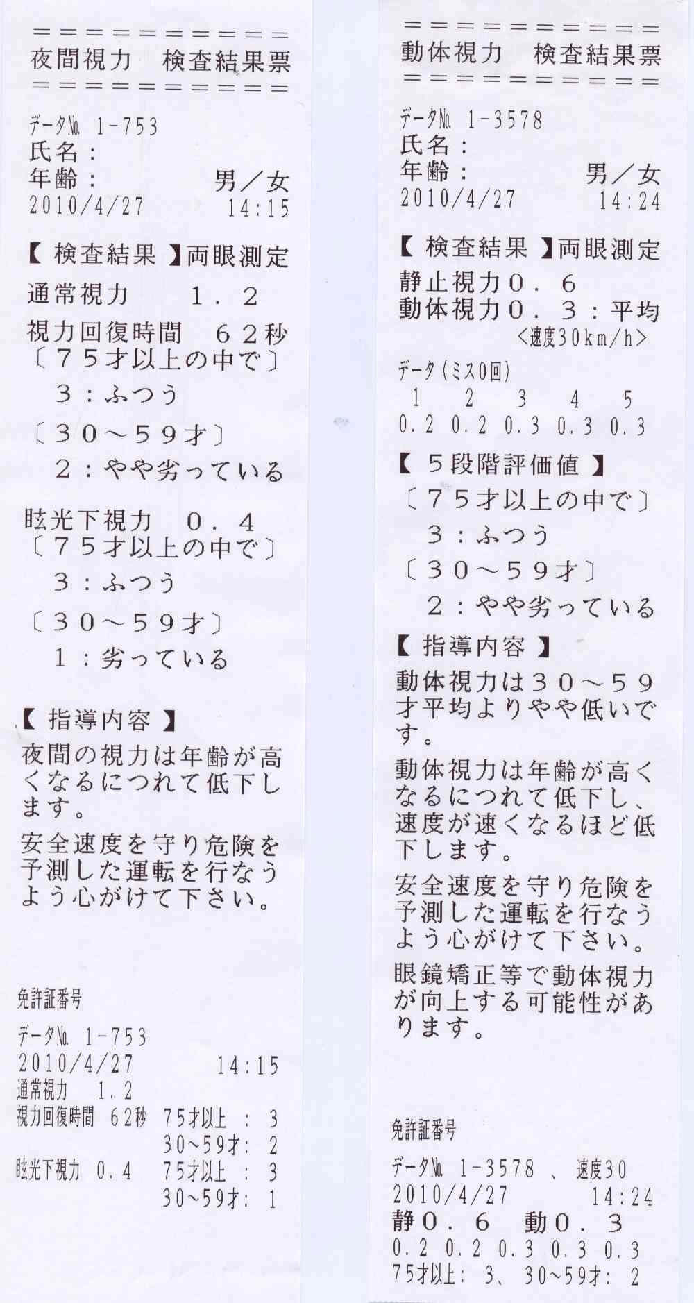 視力検査では、動体視力、夜間視力、眩しい時の視力etc。