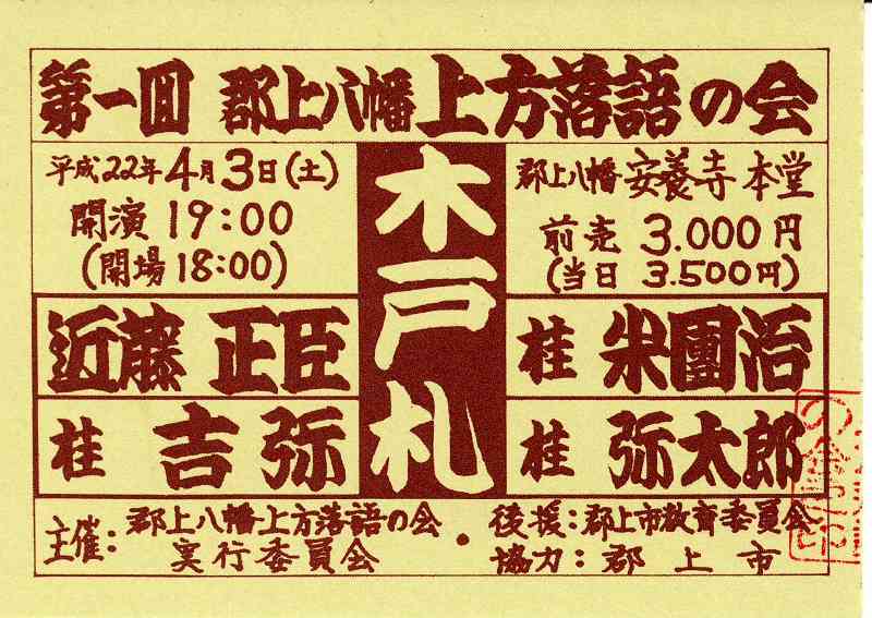 そして今回、俳優・近藤正臣氏の肝いりで「郡上八幡上方落語の会」が発足。