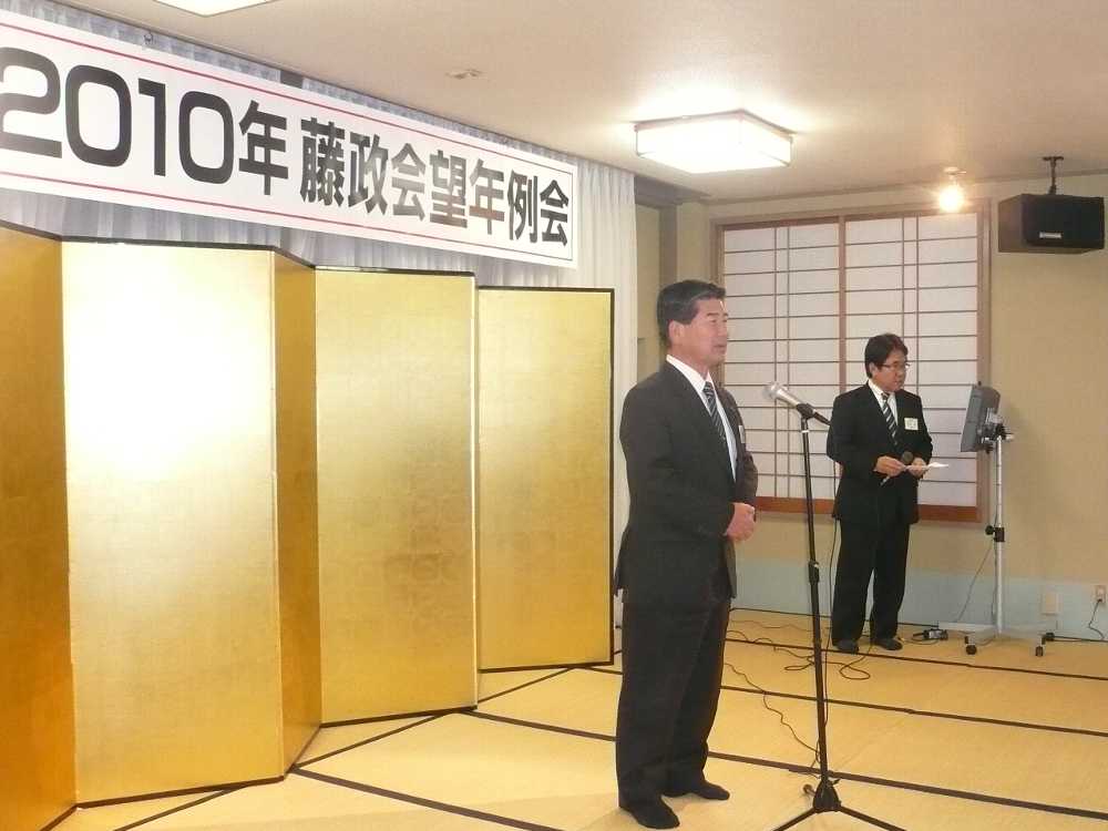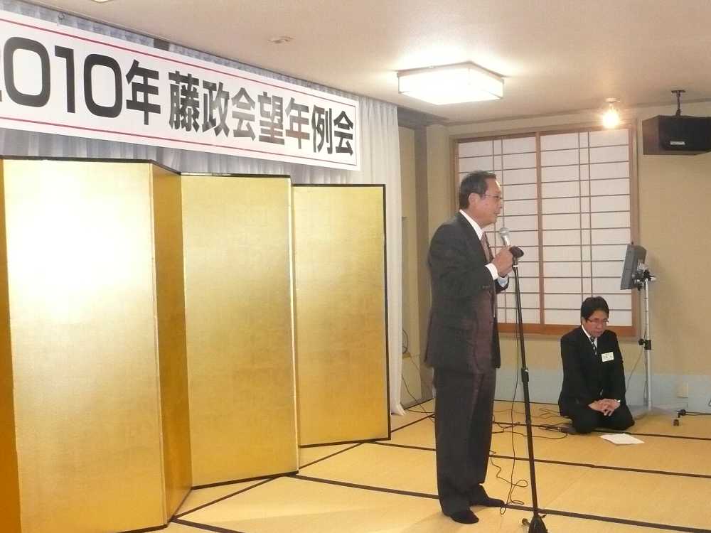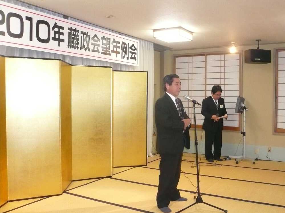 藤政会望年会で藤井孝男先生と意見交換。
