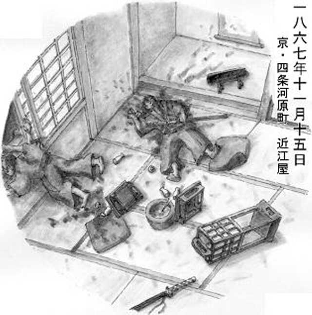 近江屋の二階で切られ、血に染まった二人・・・最後の会話。