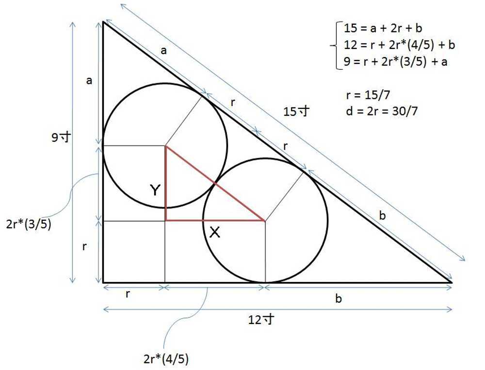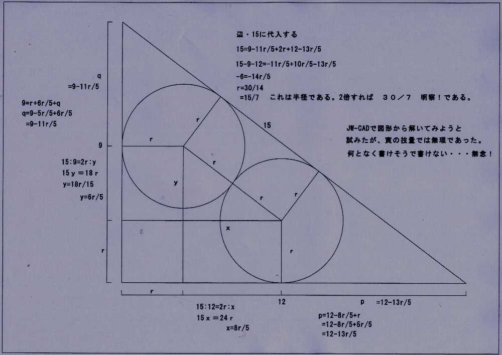 「r」にあてはめて再計算すると 9:12:15の三角形になった。