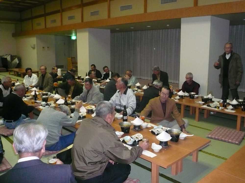 戦いを離れ、元気に飲み、語り、かんぽの宿の夜は深けた。