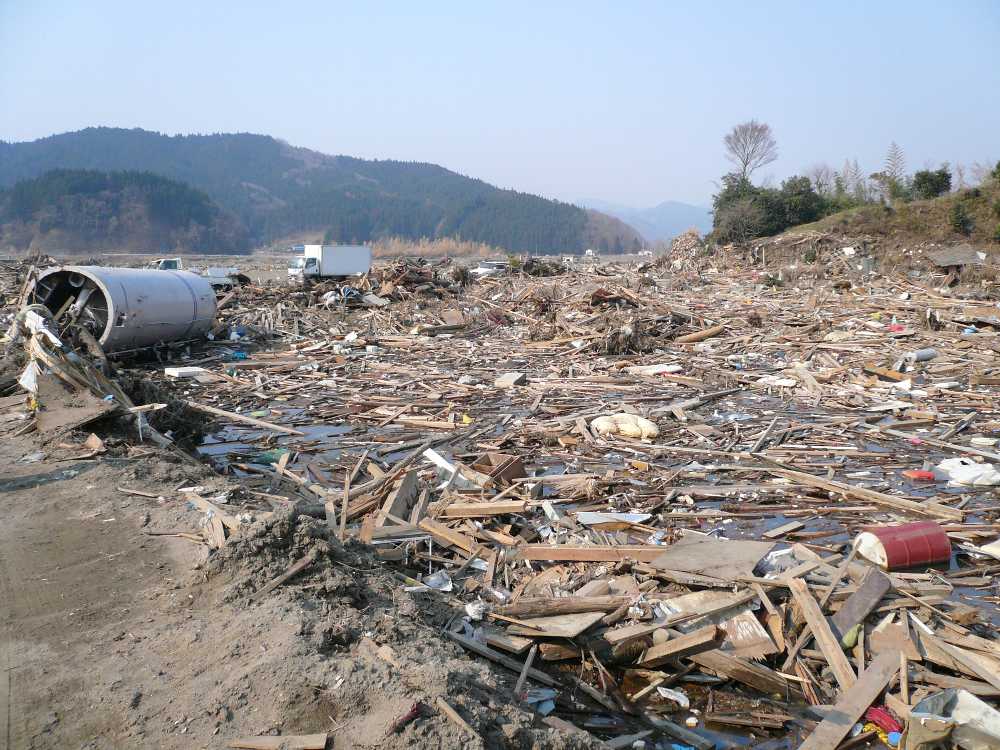 現地で、総ての建物が瓦礫と化した事実と向き合い、呆然自失。