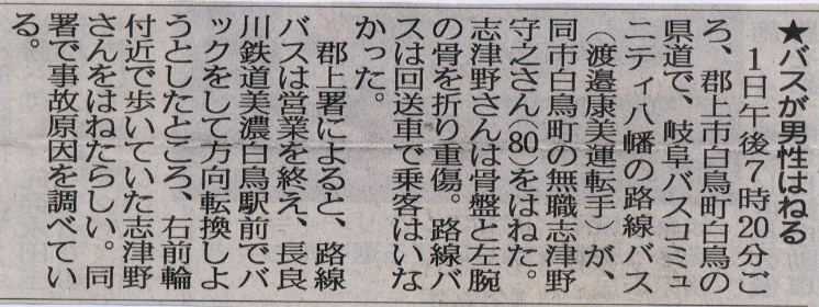 奥さんと法事の帰りに、バスから降りて、近接の車に巻き込まれたとの事。