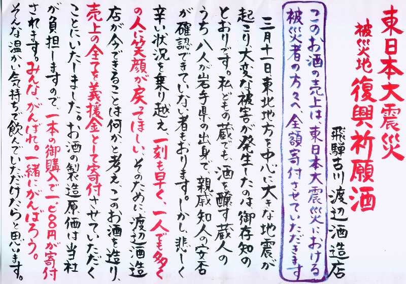 「東日本大震災・復興祈願酒」¥1,000.−