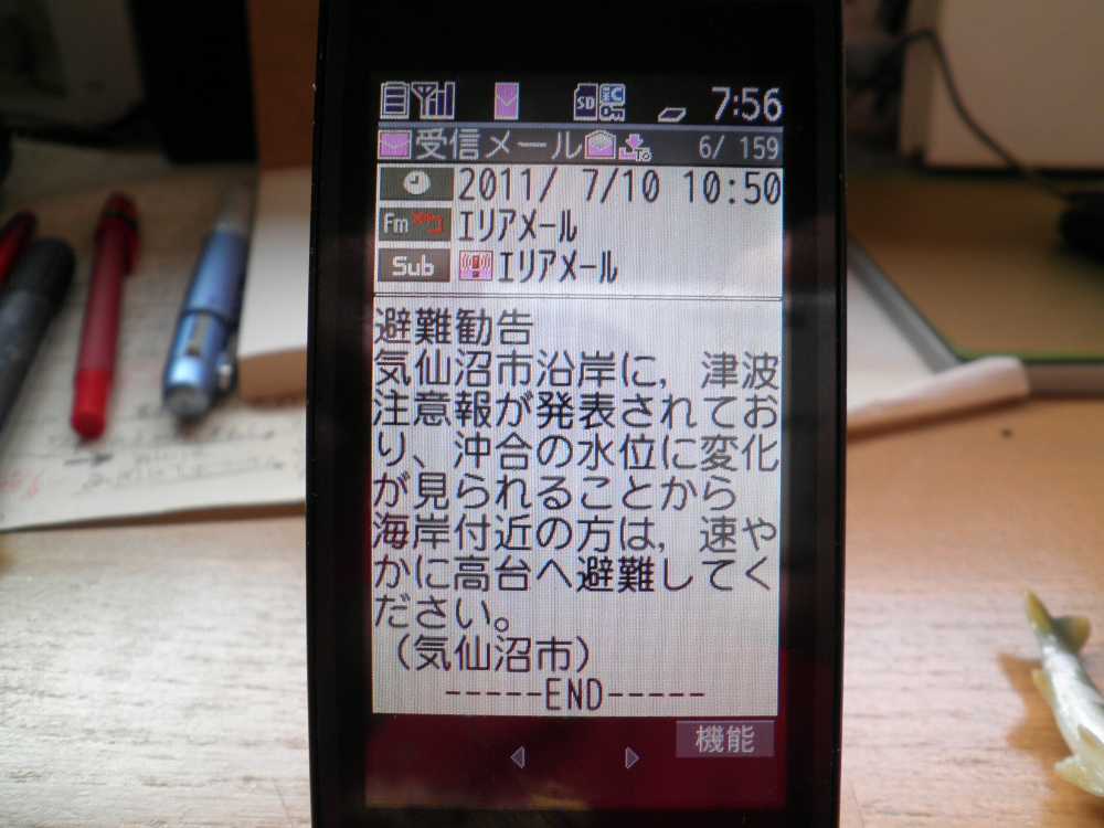 気仙沼でボランテラ中に、エリアメールを受信した。