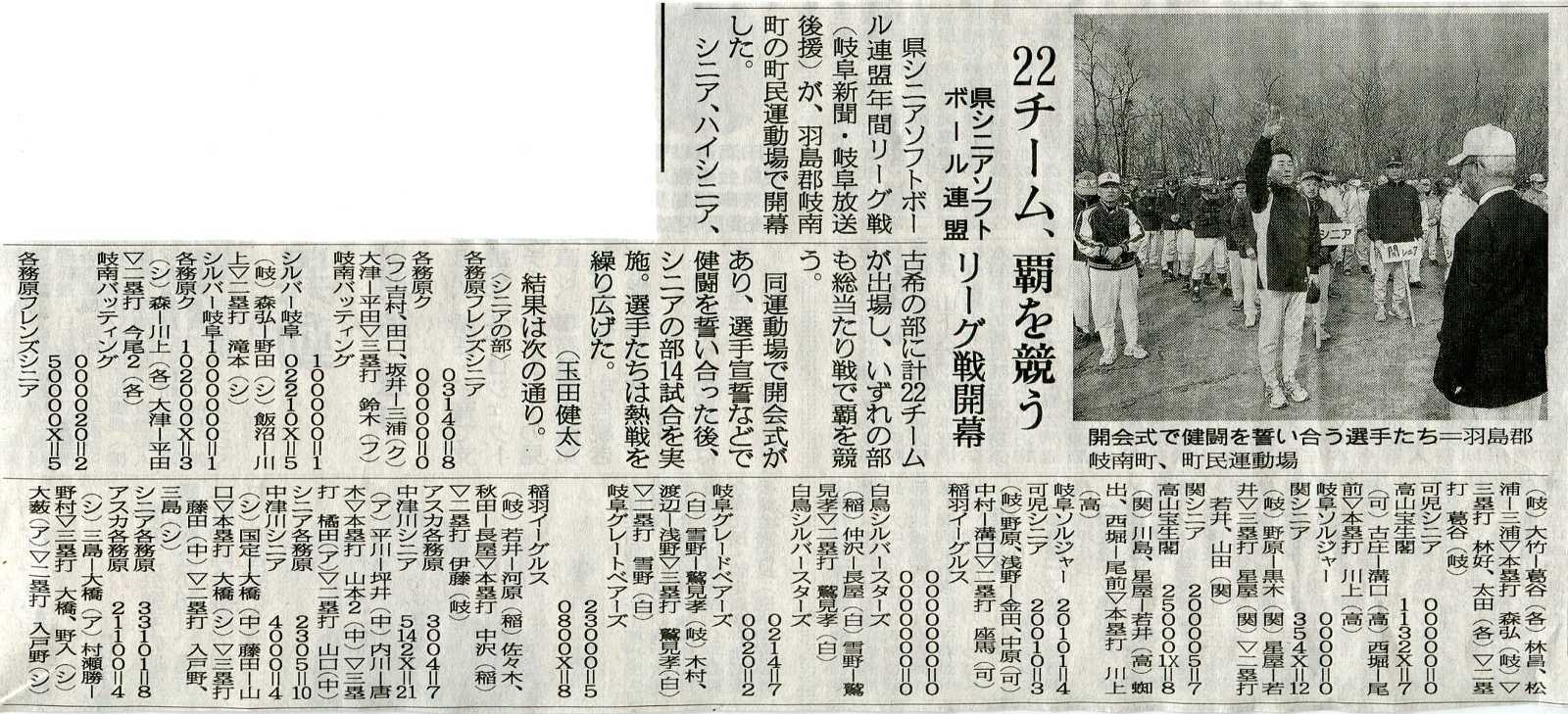 岐阜県シニアソフトボール連盟のリーグ戦が開幕した。