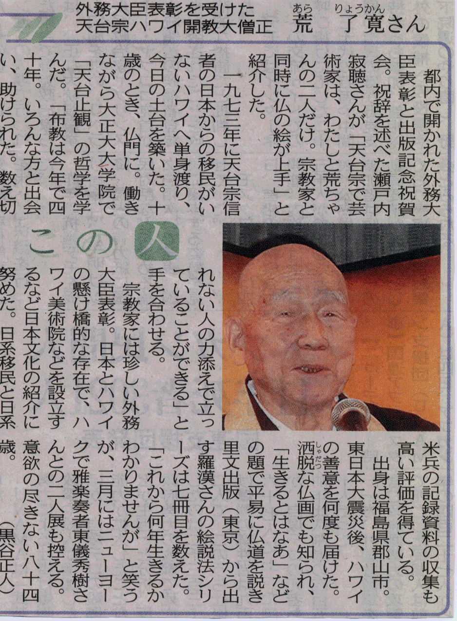 日本とハワイの懸け橋的存在で、外務大臣表彰を受けられた。