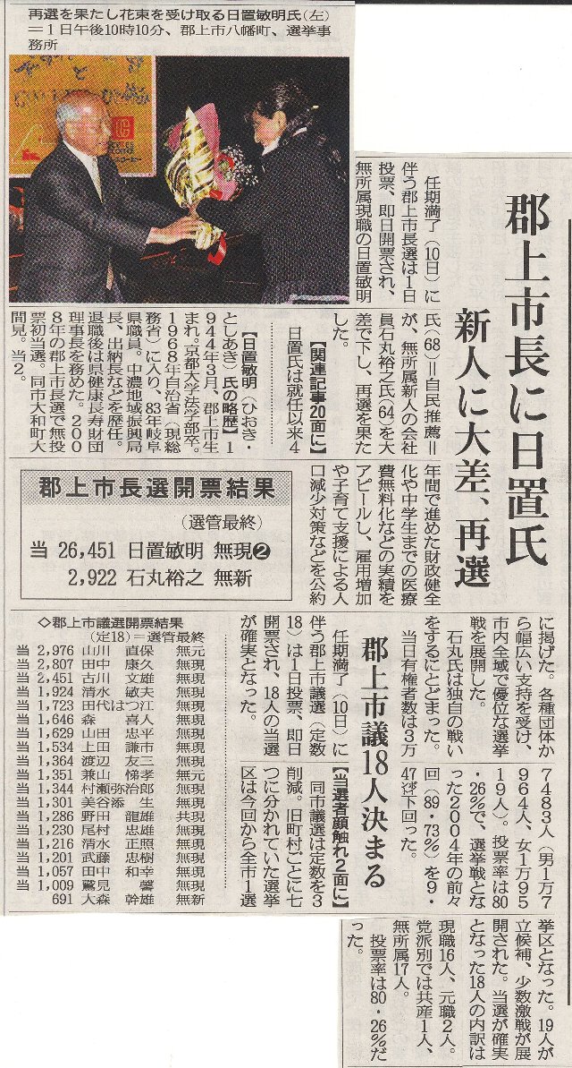 「郡上に新風を!」をと叫んだ候補はあえなく落選。