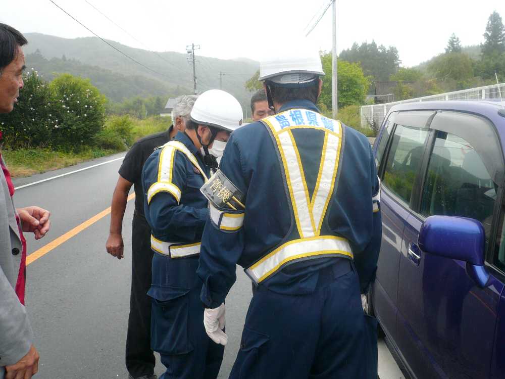 警察官の背中を見ると“島根県警”と書いてある。