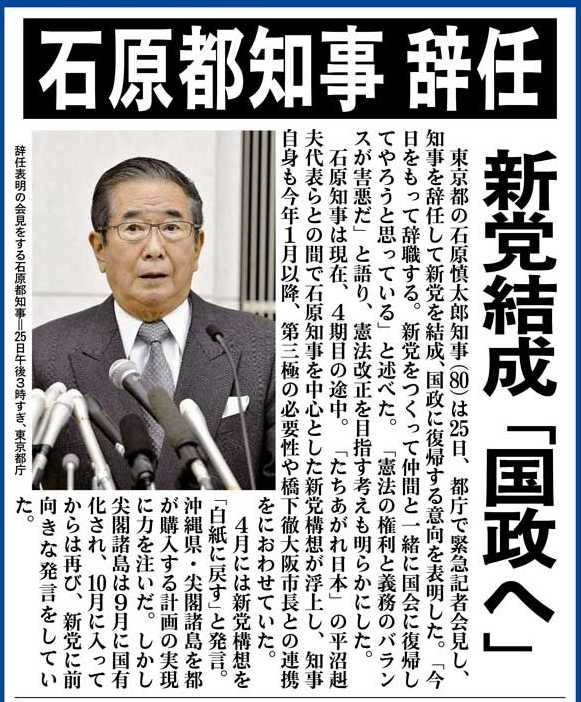 石原応援団長がようやく動いた!
