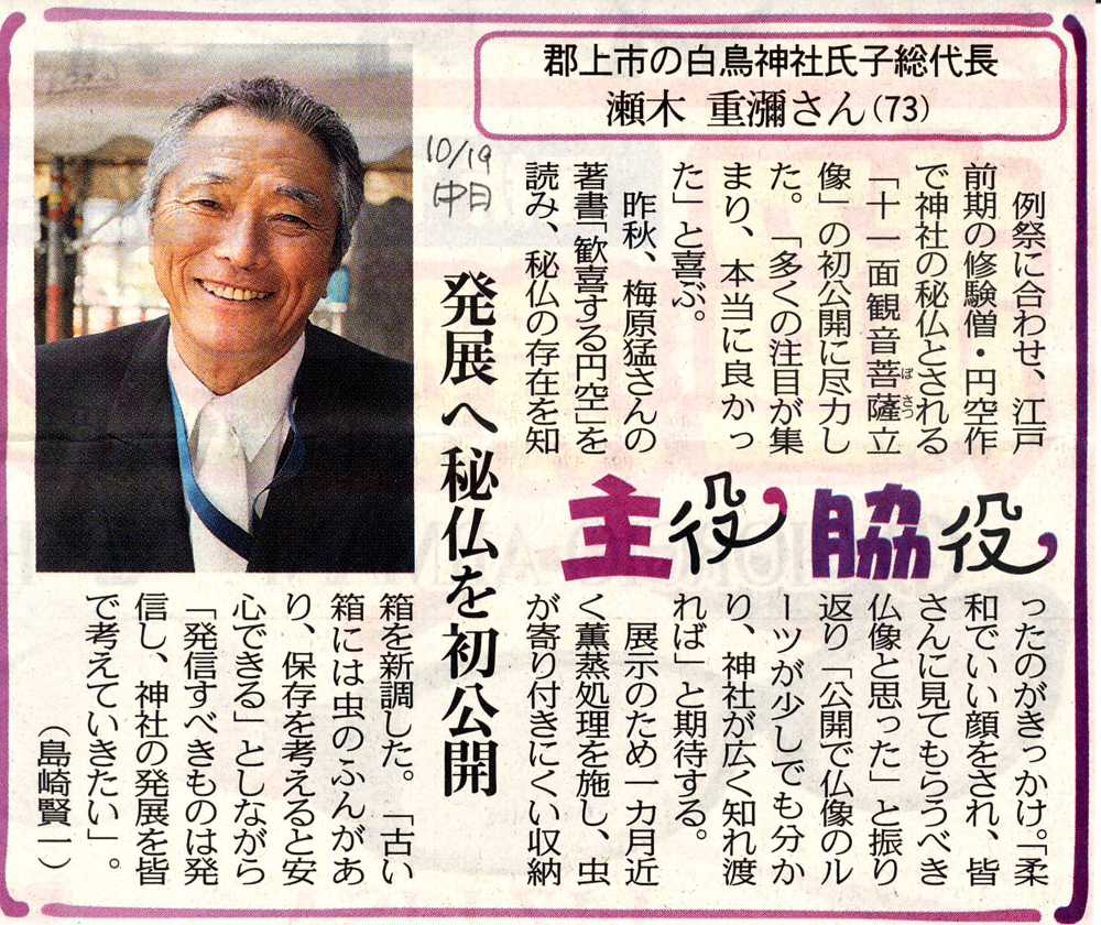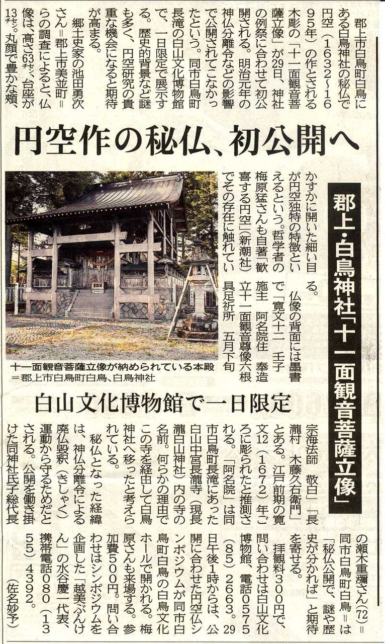 今年、白鳥秋の例祭で、秘仏と言われた円空仏を公開した。