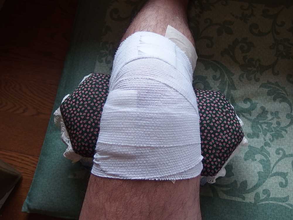 専門医不在で、取あえず湿布薬と松葉杖をいただいた。