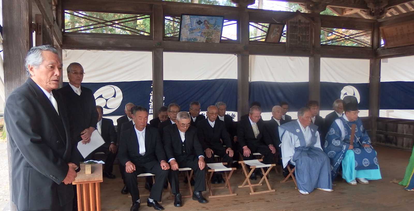 二時間、雅楽が謳われる中で神事が行われる。