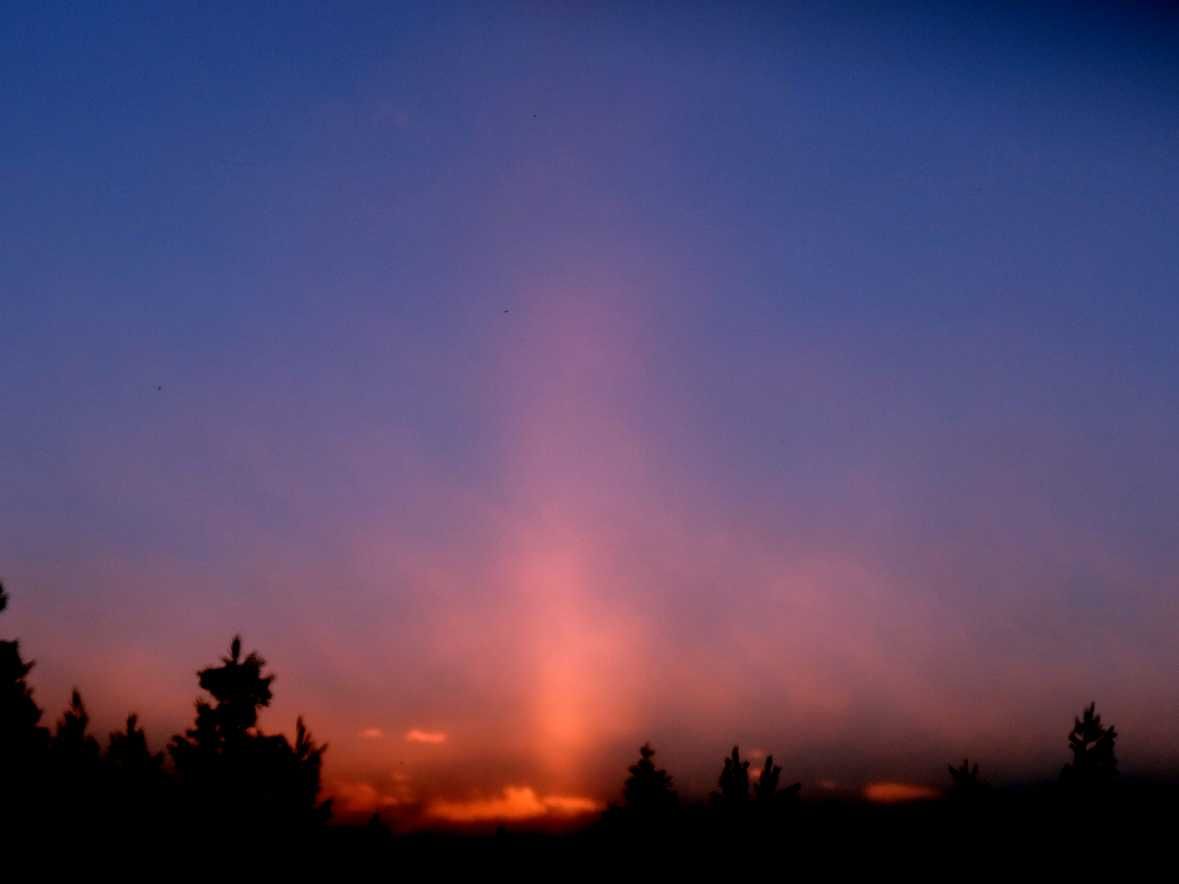 地平線に対して垂直方向に太陽から炎が出ているように見える現象。