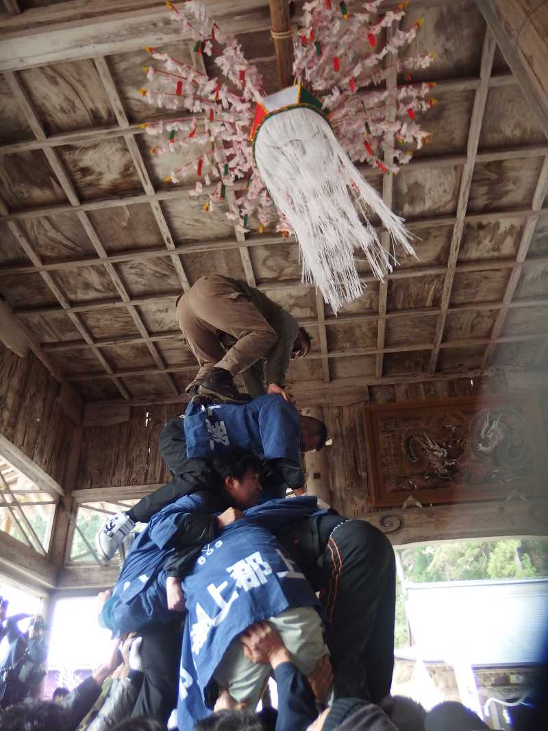 延年の舞いは続いているが人柱は2段、3段と組みあがる。