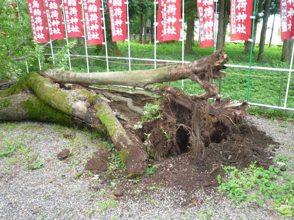一昨年、本殿背後の巨木・榎が突然倒れた。