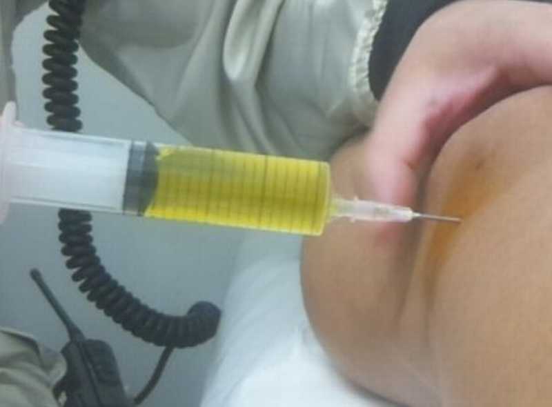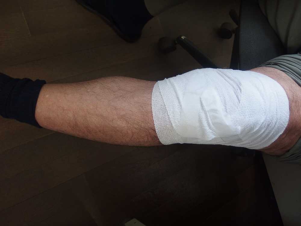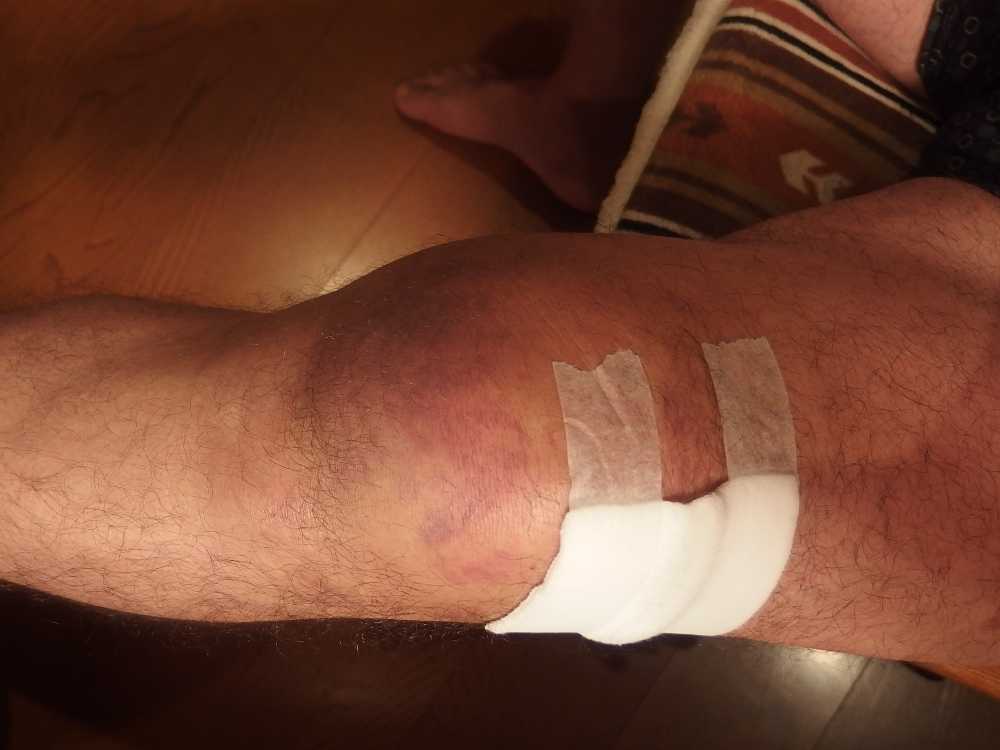 腫れた膝から、水を抜かれた。「血は混じってない!」